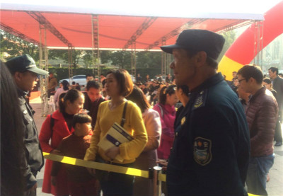 上午8点30不到,售楼中心就已经聚集了200多名购房者。他们来到售楼中心后首先要在前台登记,今天开盘现场不仅可以欣赏精彩节目,成功购房的还可以参与抽奖。据了解购房者中超半数以上都是南京人购买。