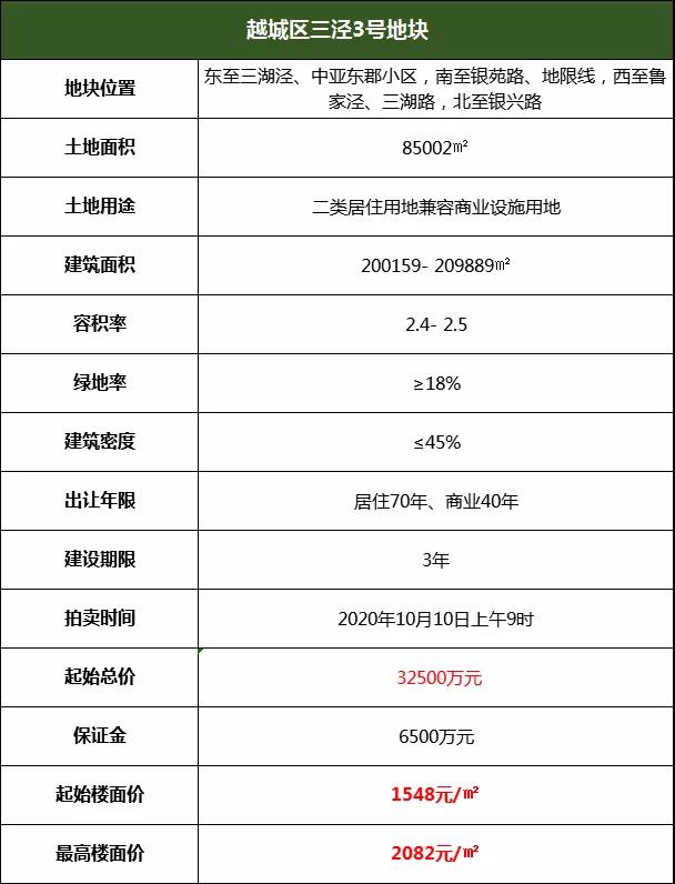 越城区三泾3号地块网上拍卖采用“竞价+竞配建”的方式出让。出让起始价为32500万元,最高限价为43700万元,在最高限价内按照“价高者得”的原则确定竞得人,不设底价,增价幅度为200万元或200万元的整数倍,初次报价不得低于起始价,报价以增价方式进行,每次加价不得小于规定的增价幅度。