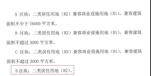 除了D区块为纯居住地块,其他3个地块均兼容商业。