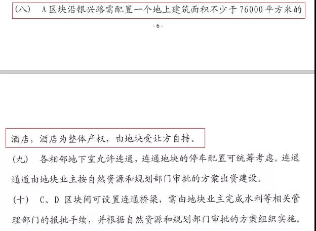 特别值得注意的是,A区块内需配建一个地上建筑面积不少于76000㎡的酒店。